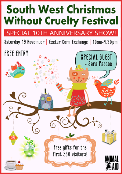 Barely has the dust settled from the crowds attending the Plymouth Vegan Fair last Saturday before we have another vegan event to look forward to this coming Saturday. Although a little further to travel from the Cornish border, the Animal Aid South West Christmas Without Cruelty Festival at the Exeter Corn Exchange, is always worth a pre-Christmas day trip.